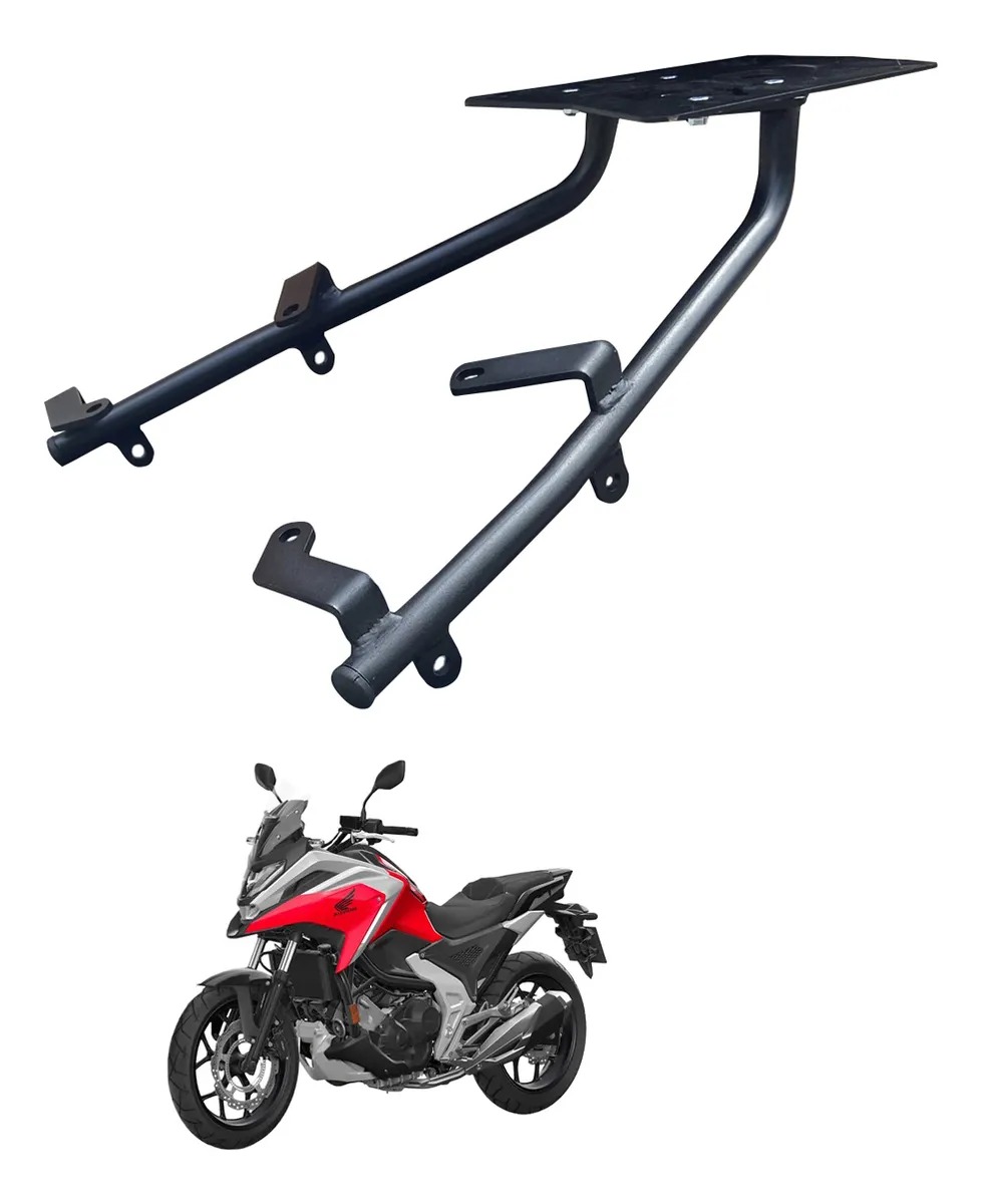 Suporte de bauleto tem a finalidade de dar a fixação ao baú da motocicleta, fazendo com que seja possível fixa-lo com toda segurança na parte traseira da moto. O suporte do bagageiro é fixado na parte de trás da motocicleta, nos furos de fábrica e utilizando os parafusos que já estão inclusos dando fixação a base do baú. O produto é desenhado com encaixe perfeito para a motocicleta, garantindo a compatibilidade e a alta durabilidade na moto. Produzido em chapa de aço 3mm carbono de alta qualidade, sua pintura eletrostatica, garantindo melhor acabamento e alta durabilidade.
